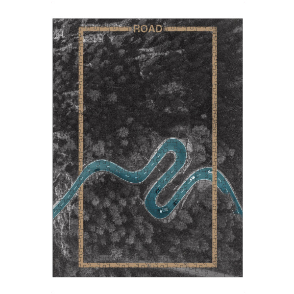 Puzzle Ravensburger "Road from above" artboxONE - Natur,Reise,Automobile - Road,Cars,Travel,Collage,Way,Country,Wood,Gold,Grey,Minimal - Bild road