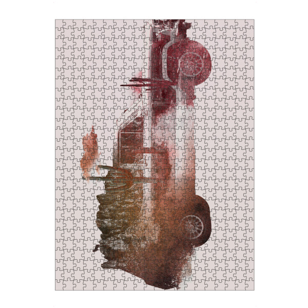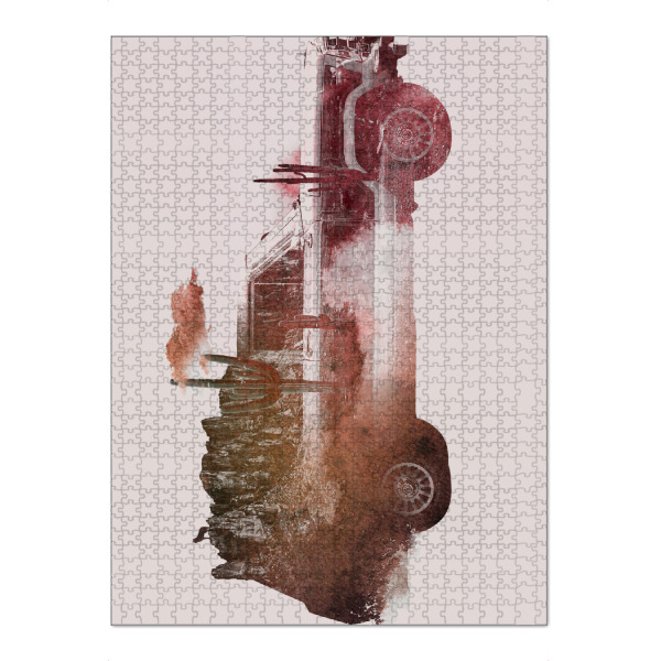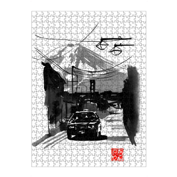 Puzzle Ravensburger "Fujiyoshida with rover" artboxONE - Natur - Fujiyoshida,Japan,Rover,Fuji,Sumie,Car,Malerei,Painting,Schwarzweiß,Blackandwhite