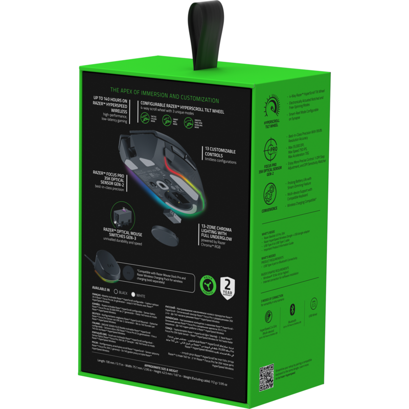 Razer Basilisk V3 Pro 35K Phantom White Edition Voll anpassbare kabellose ergonomische RGB-Gaming-Maus mit 13-Zonen RGB Beleuchtung