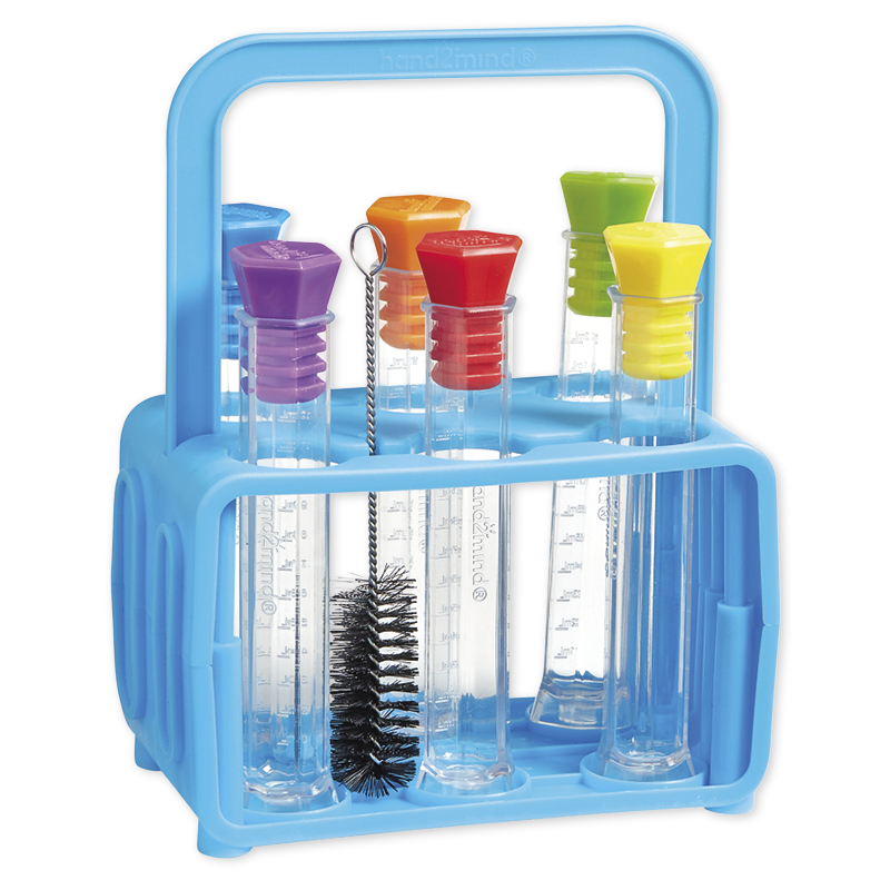 Labor Basis Set mit Reagenzglasgestell aus Holz - Reagenzgläser/Stopfen, Reagenzglasgestell, Pipetten, Reagenzglasbürste