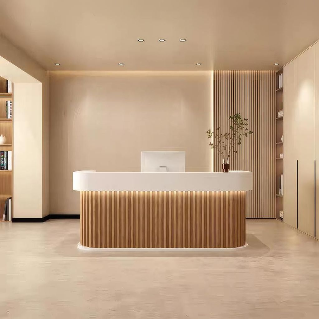 Reception Desk, Bar Counter, Rounded Corner Design, Vertical Stripe Pattern, Salon, Hotel, Store Front Desk Braun 110×60×100cm 【Baise+yuanmuse1...