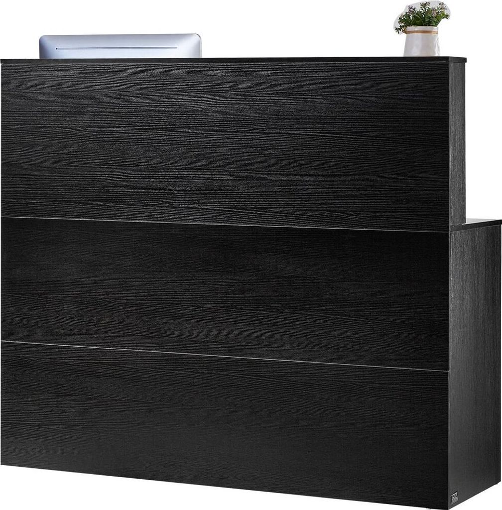 Reception Desk, 55.12 x 31.50 x 47.24 in L-Shaped Front Counter Table, Office Reception Counter with Drawer Keyboard Tray and Storage Cabinet, for ...