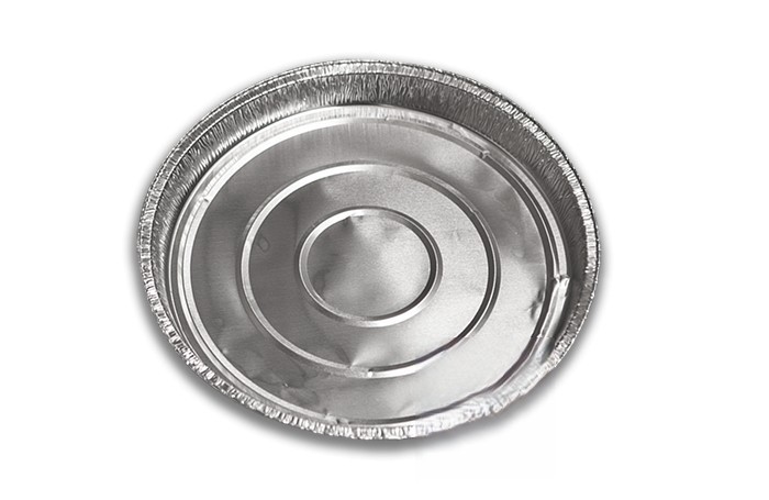 Recipiente redondo de alumínio para frangos grandes, com borda elevada e enrolada. Modelo: ECA002