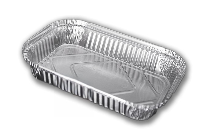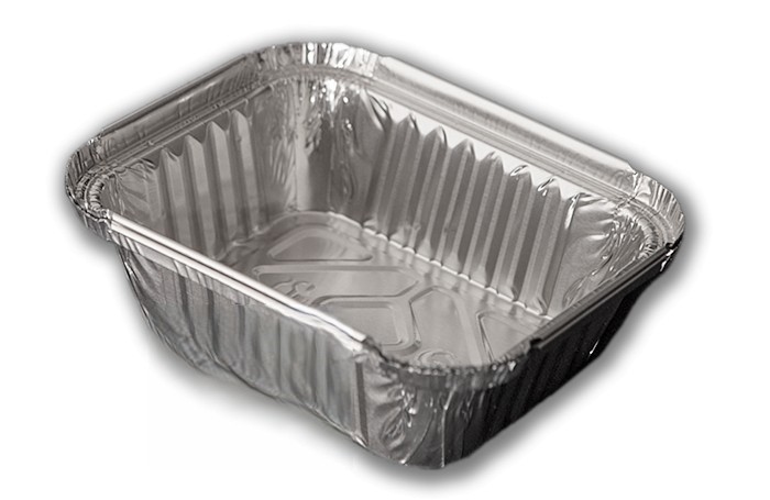Recipiente retangular de alumínio de 650 ml para 2 porções de "lasanha", com borda levantada e enrolada. Modelo: ECA007