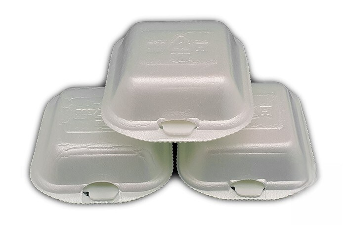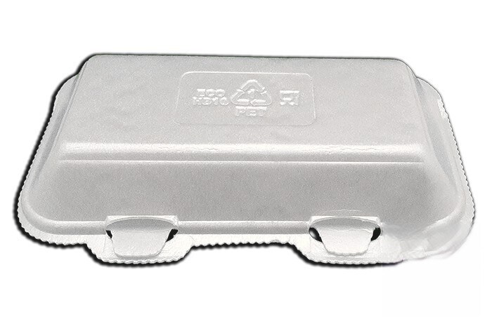 Pequeno recipiente de menu de hambúrguer em PET branco 100% reciclado. 500 dólares. Modelo: PET001