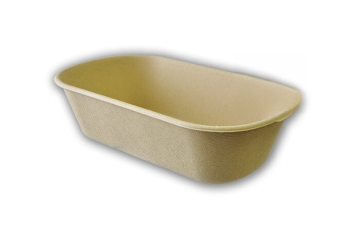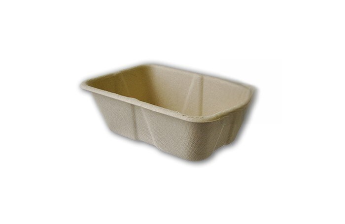 Recipiente retangular feito de polpa natural ecológica e compostável de 470 ml. Bandeja descartável - Modelo: ECP014
