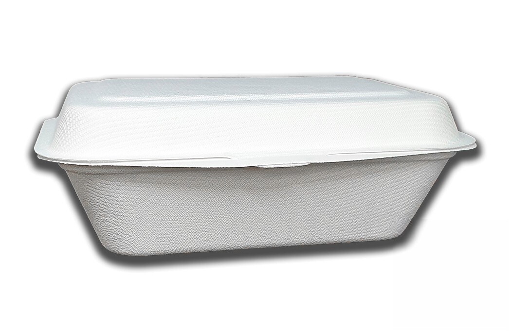 Recipiente retangular compostável feito de polpa de bambu de 1000 ml. Bandeja descartável - Modelo: ECP016