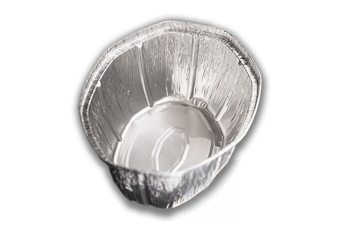 Recipiente oval de alumínio de 2,6 litros com borda elevada e curvada. Modelo: ECA003
