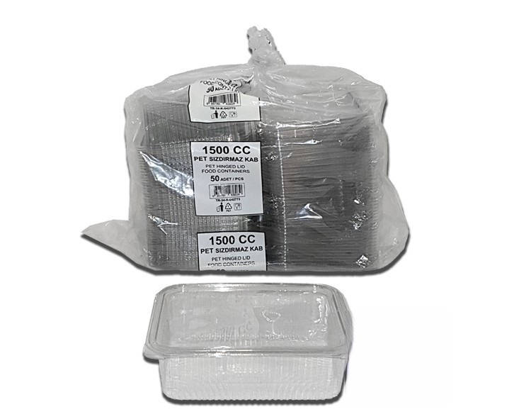 Recipiente de menu PET transparente de 1500 ml com tampa embutida de alta transparência e vedação hermética. Modelo: PET105