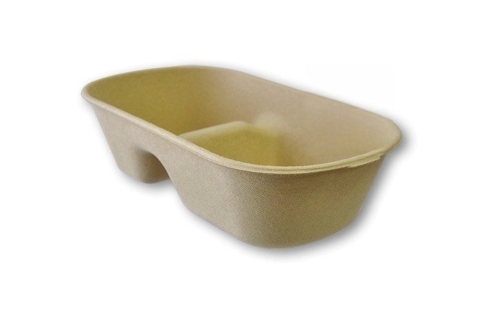 Recipiente retangular com compartimento compostável feito de polpa de bambu de 1000 ml. Bandeja descartável. Modelo: ECP017