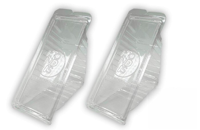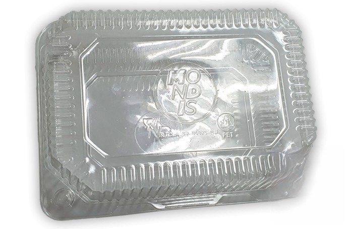 Recipiente plástico para cardápio feito em PET para sanduíche. Modelo: PET005
