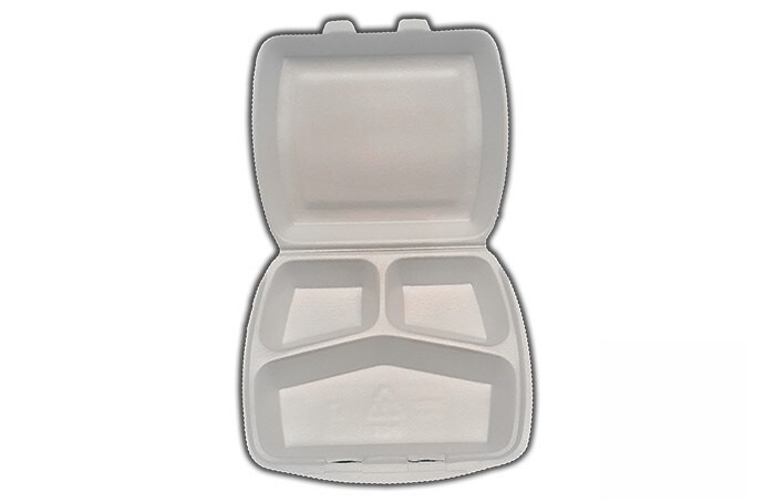 Recipiente porta menu com 3 compartimentos, PET branco 100% reciclado. 200 UNIDADES Modelo: PET004