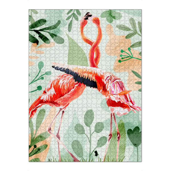 artboxONE Puzzle "Flamingo Love" artboxONE - Tiere,Liebe - Flamingo,Tropical,Nature,Animal,Bird,Travel,Exotic,Leaves,Blush,Red,Pink,Mint,Green,Love