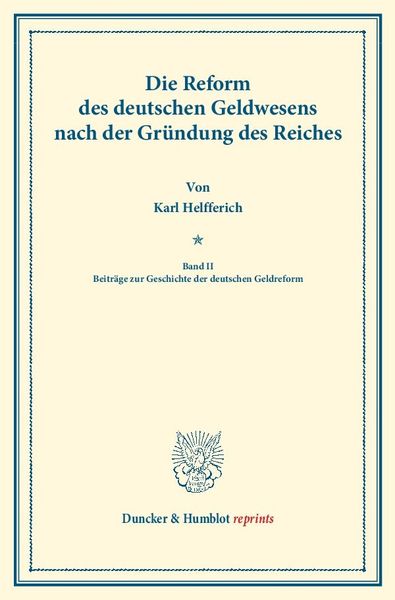 Die Reform des deutschen Geldwesens nach der Gründung des Reiches., Taschenbuch von Karl Helfferich, Duncker & Humblot, 9783428164387