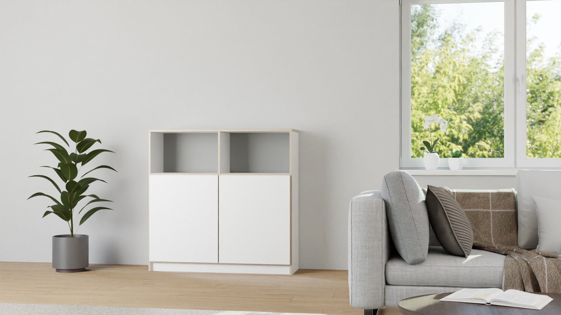 PAIDI Regal OSCAR Weiß / Braun - Breite 124 cm - Höhe 120 cm - Tiefe 40 cm - Holznachbildung - Absetzungen Eiche Nebraska NB - 9 offene Fächer