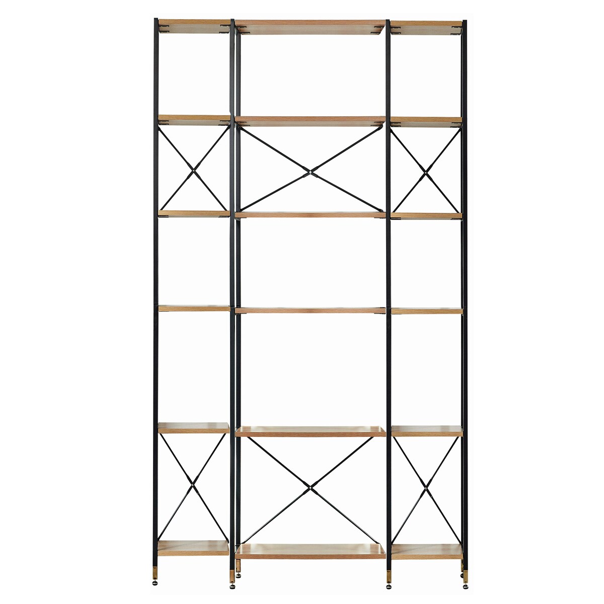 Möbilia Regal mit 6 Böden | MDF furniert | Gestell Metall | B 45 x T 30 x H 210 cm | natur-schwarz | 12020044 | Serie REGAL