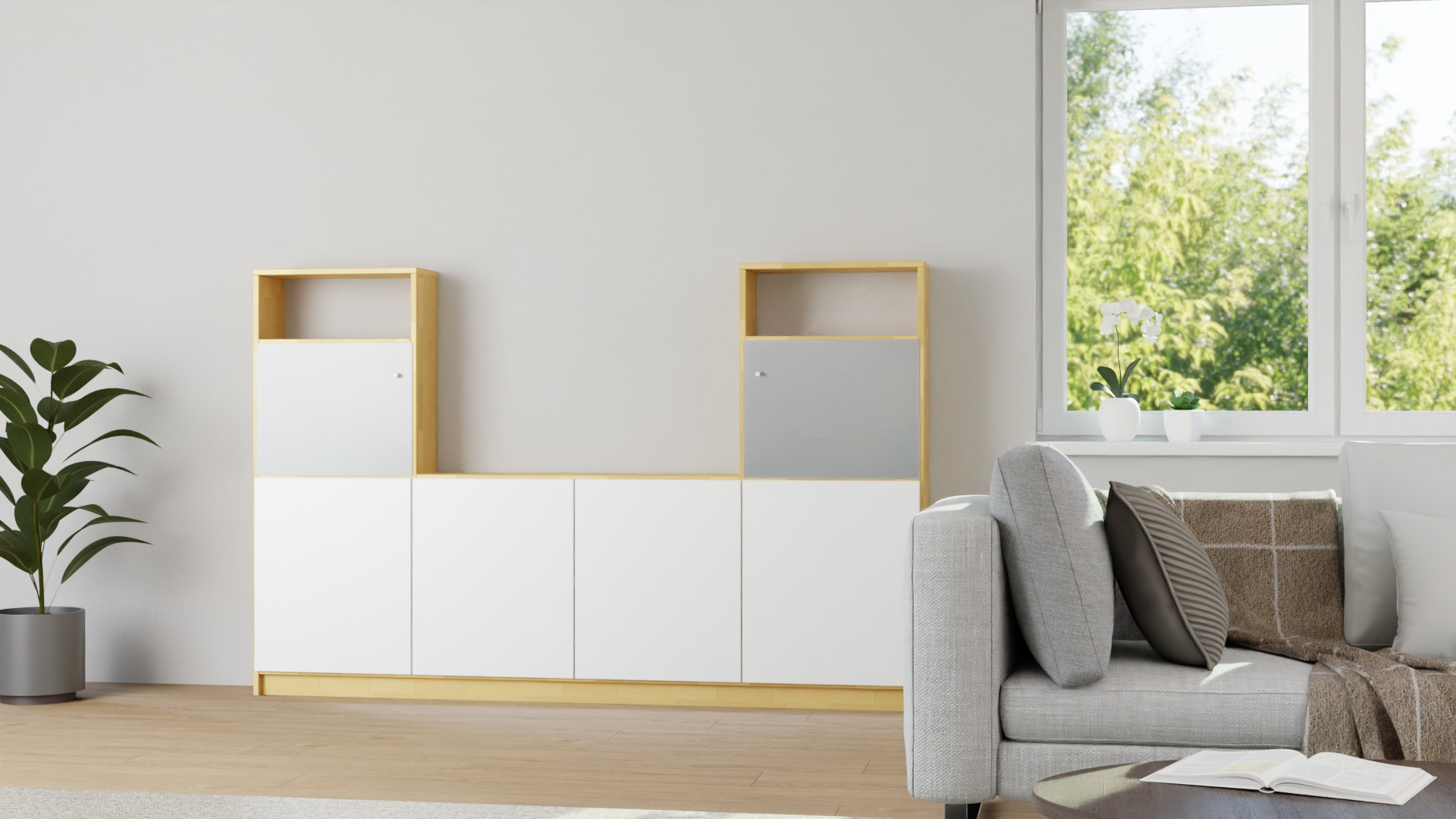 Pickawood Regal nach Maß - Weiß/Grau/Schwarz/Eiche/Buche Buche