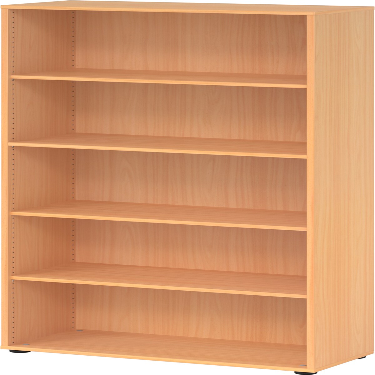 bümö office Regal Buche, Standregal Holz - Aktenregal für Ordner & Bücher, Bücherregal 100 cm breit, 5 OH Regal Wand, Büroregal, Holzregal,