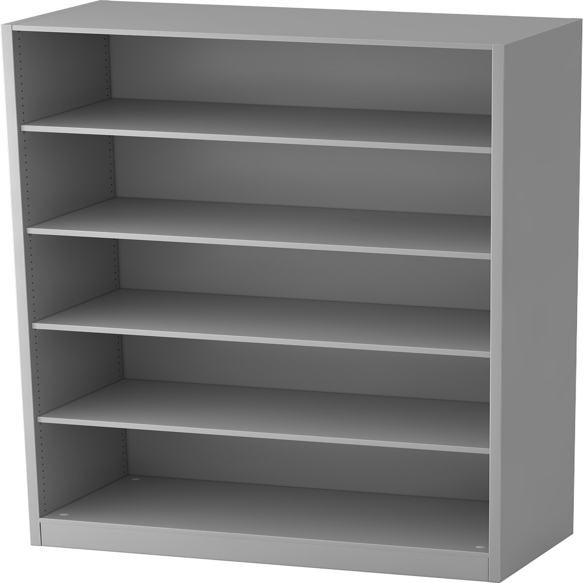 bümö office Regal grau, Standregal Holz - Aktenregal für Ordner & Bücher, Bücherregal 100 cm breit, 5 OH Regal Wand, Büroregal, Holzregal,