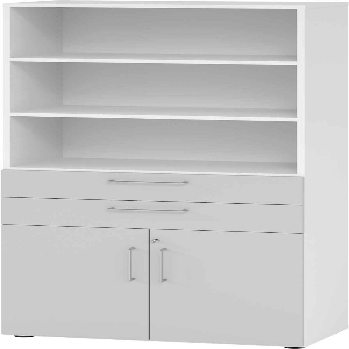 bümö Aktenregal & Schrank abschließbar, Büroschrank Regal & Schubladen Kombination Holz 80cm breit in Weiß/Asteiche - Schrank für's Büro &