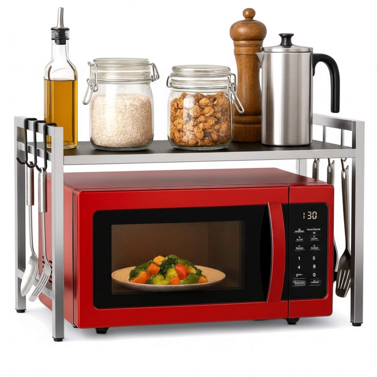 Stehendes Küchenregal Mikrowellenhalter aus Metall, platzsparendes Bäckerregal mit Gestell, Drahtkorb aus Eisen, mit Haken, Regal für die Küche...