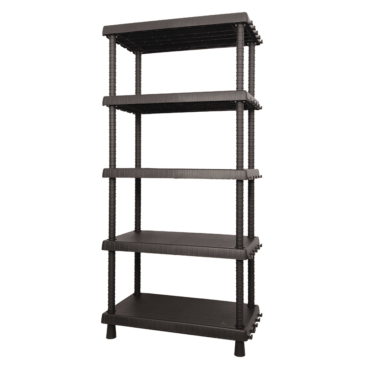 Titan S - Modulares Regal mit 5 Ebenen 60x30xH180 cm aus schwarzem Kunststoff
