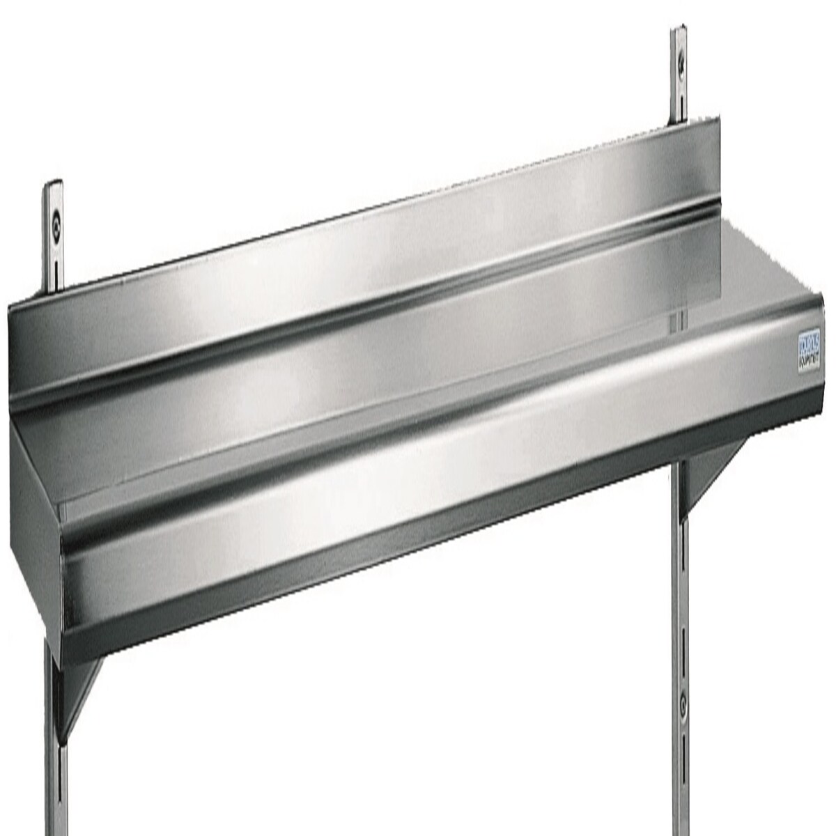 Tournus Edelstahl Wandregal mit 1 Ebene mit Regalschiene. L x T x H: 800 x 290 x 315 mm. Aufkantung hinten Höhe 50mm. Stärke Regalboden: 1,2mm.