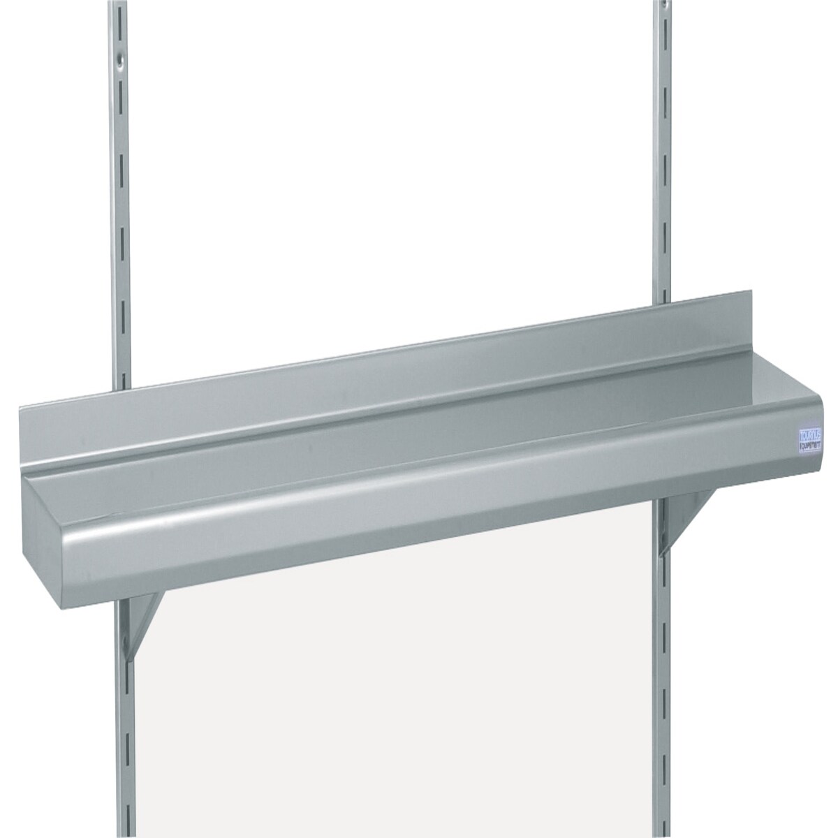 Tournus Edelstahl Wandregal mit 1 Ebene mit Regalschiene. L x T x H: 1000 x 290 x 315 mm. Aufkantung hinten Höhe 50mm. Stärke Regalboden: 1,2mm.