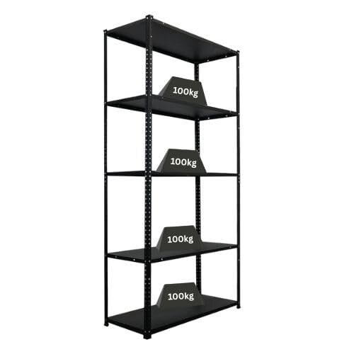 PROREGAL Schraubregal Haldor | HxBxT 180x90x40cm | 5 Stahlplatten-Ebenen | Fachlast 100 kg | Schwarz | Stecksystem Lagerregal Regalsystem