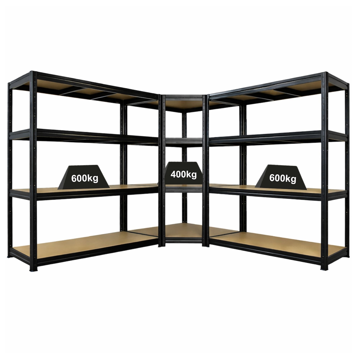 PROREGAL Mega Deal DINO 1x Eckregal + 2x Schwerlastregal, 180x270x60cm, Fachlast 400kg & 2x 600kg, Schwarz, Schwerlastregal Stecksystem Regalsystem
