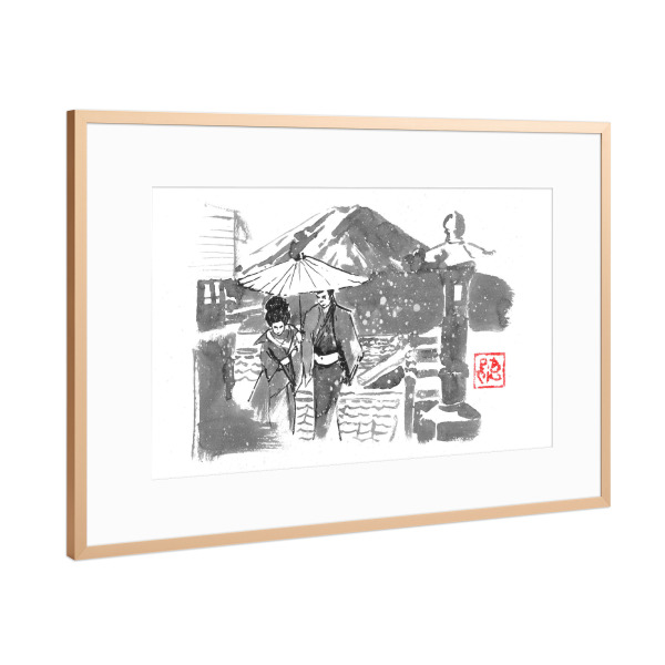 Poster mit Rahmen Kupfer "Spaziergang unter dem Schnee" artboxONE - Schwarzweiß,Reise / Asien - Fuji,Japan,Regenschirm,Sumie,Samurai,Geisha