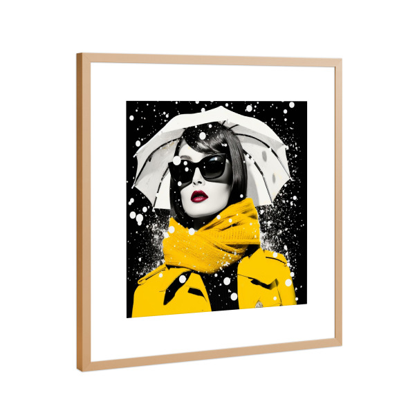 Poster mit Rahmen Kupfer "SCHNEEFLOCKEN POPART FRAU" artboxONE - Menschen,Für Mama - Pop-art,Frau,Regenschirm,Regen