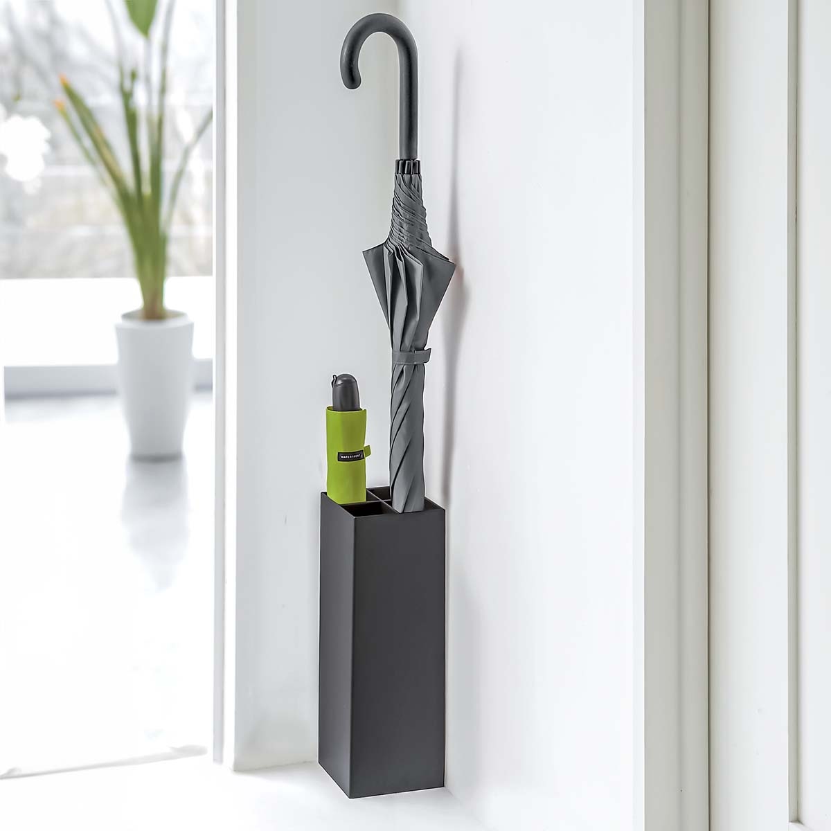 Regenschirmständer aus Metall in Anthrazit, rechteckig, modern