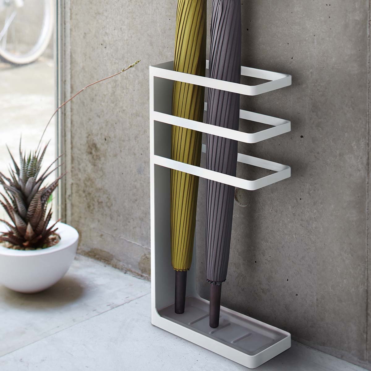 Yamazaki Schirmständer Regenschirmständer weiß Metall schmal modern platzsparend 10x44x23cm "LAYER"