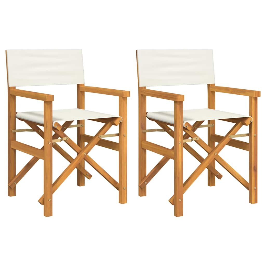 vidaXL Regiestühle 2 Stk. Klappbar Creme Massivholz Teak, klappbarer Regiestuhl, Camping-Regiestuhl, Klappstuhl, Outdoor-Regiestuhl, Garten-Regiestuhl
