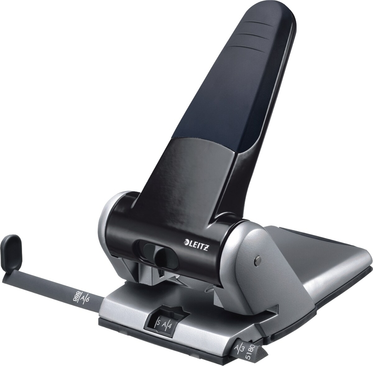 LEITZ Registraturlocher 65 Blatt Stanzleistung mit Anschlagschiene schwarz Packung mit 8 Stück