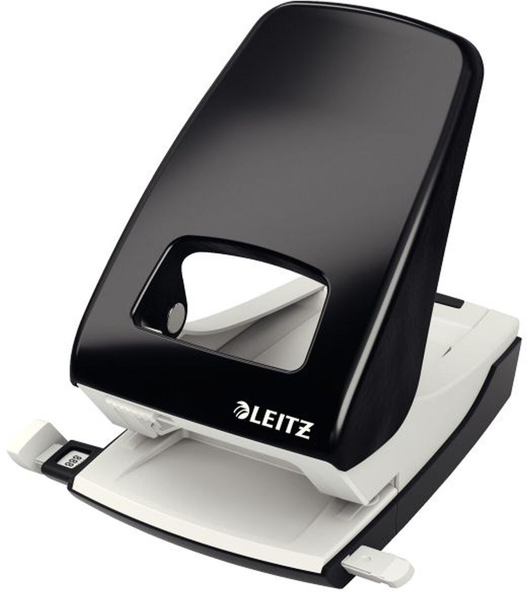 LEITZ Registraturlocher 4,0mm mit Anschlagschiene schwarz in Blisterverpackung Packung mit 5 Stück