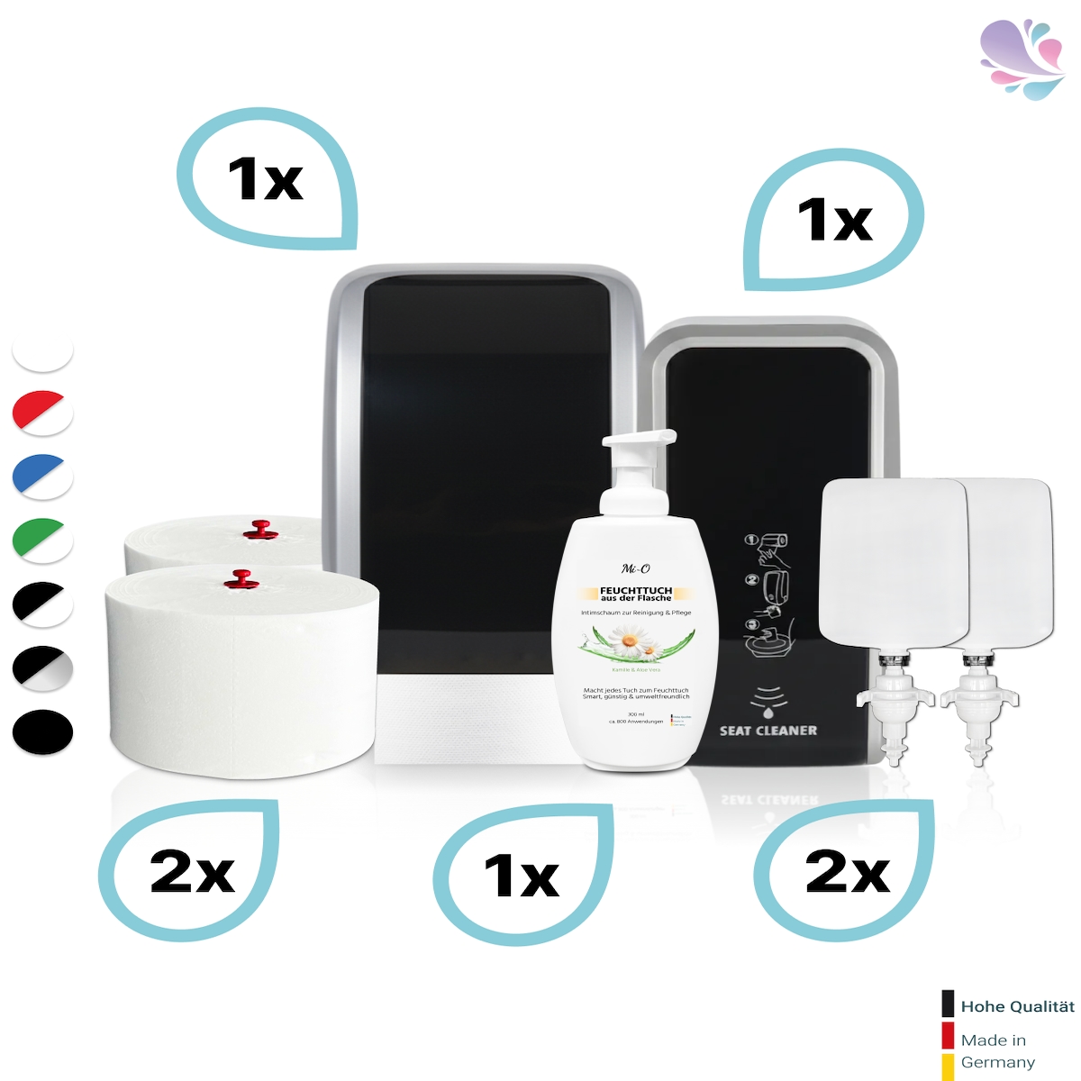 Blanc HYGIENIC KOMPLETT-SET Toilettenkabine: Toilettenpapierspender + SENSOR Sitzreinigung + Reinigungsschaum + Füllmittel