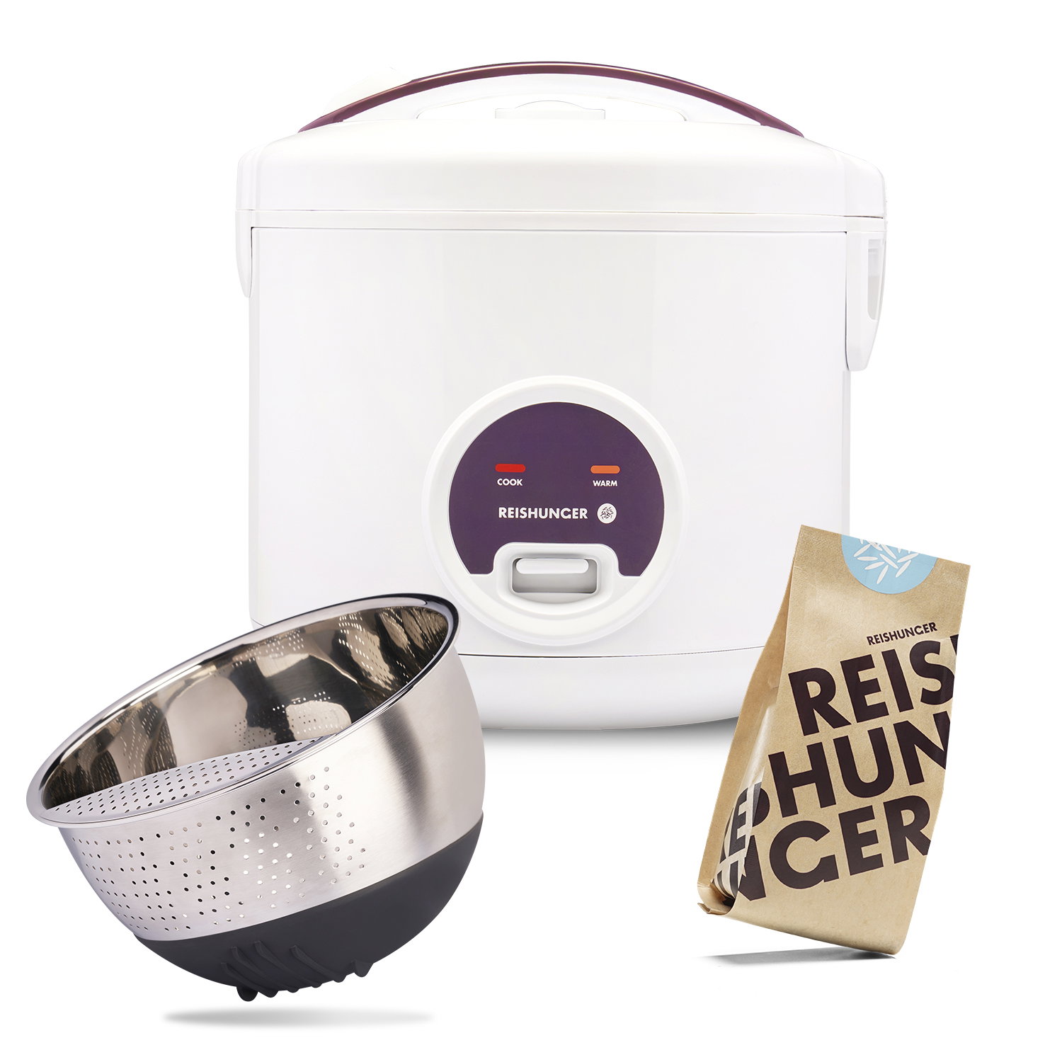 Reishunger Basis Reiskocher Set (1,8 l) | Weiß | Elektrischer Reiskocher mit Dampfgarfunktion| Innentopf mit Keramikbeschichtung