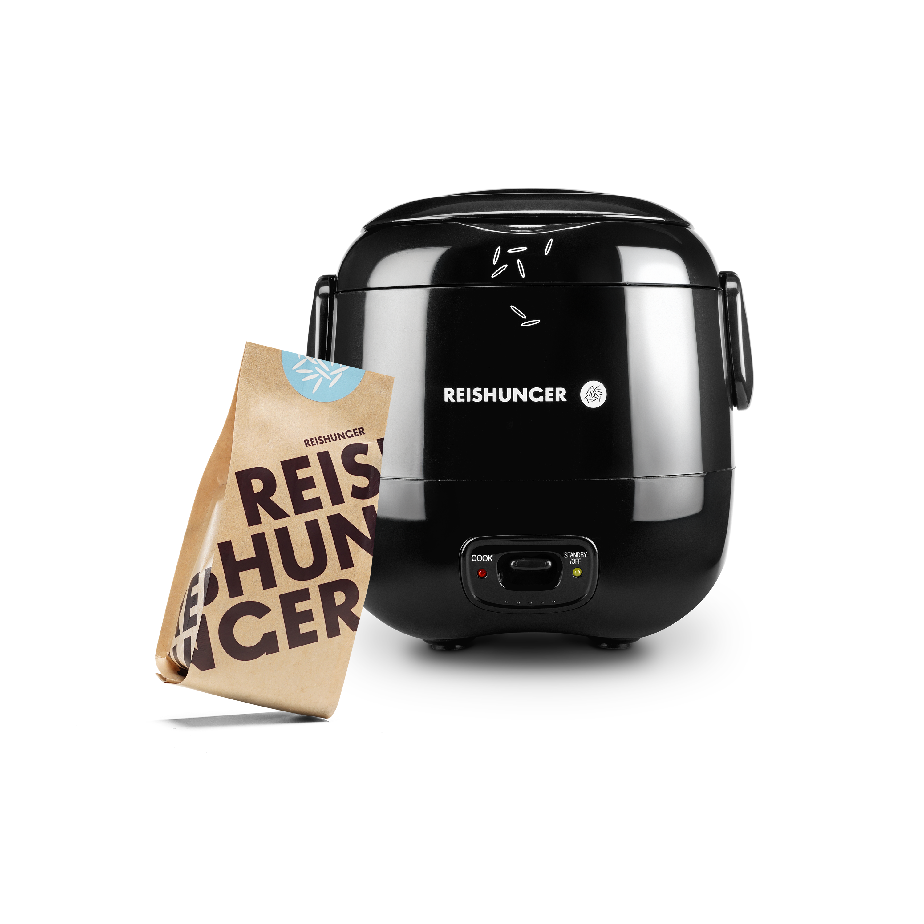 Reishunger Digitaler Mini Reiskocher (0,6l) + Reiskocher Kochbuch | Schwarz