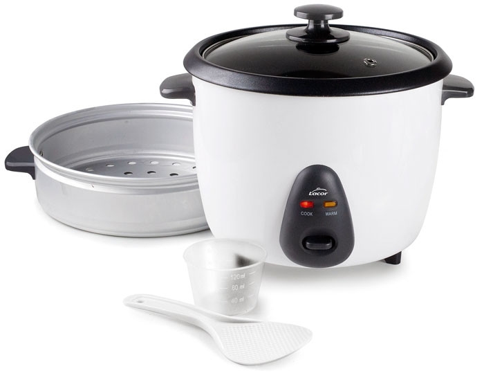 LACOR elektrischer Reiskocher WEISS 700W 1,8 L mit Löffel, Messbecher und Dampfgarer 69233