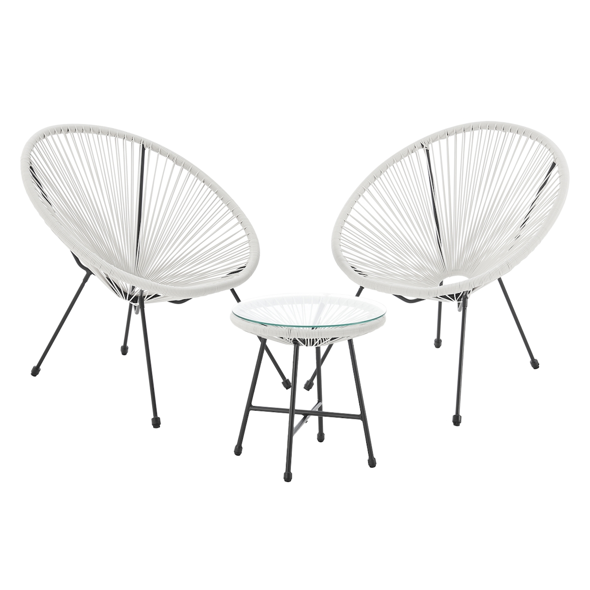 SVITA BALI Balkon Möbel Set Lounge Garnitur Relax Egg-Chair Flecht-Design Weiß