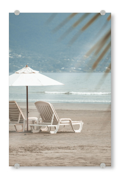Acrylglasbild "Relaxing" artboxONE - Reise,Reise / Strand und Meer - Nature,Ocean,Sand,Chairs,Summer,Hot,Natur,Beach,Strand,Meer,Sea,Reise,Travel