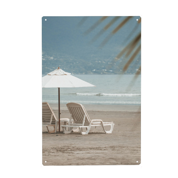 Metall Poster "Relaxing" artboxONE - Reise,Reise / Strand und Meer - Nature,Ocean,Sand,Chairs,Summer,Hot,Natur,Beach,Strand,Meer,Sea,Reise,Travel