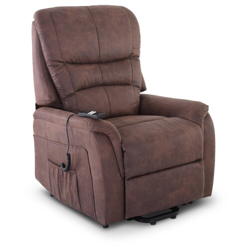 Fernsehsessel mit Aufstehhilfe, Relaxsessel mit elektrischer Liegefunktion, 2 Motoren, 120 kg belastbar, Mikrofaser, Kaffeebraun, Raburg Jan