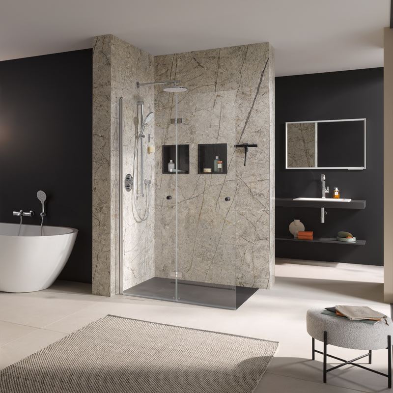 HSK RenoDeco Designplatte 100 x 210 cm Marmor, Weiß-Grau