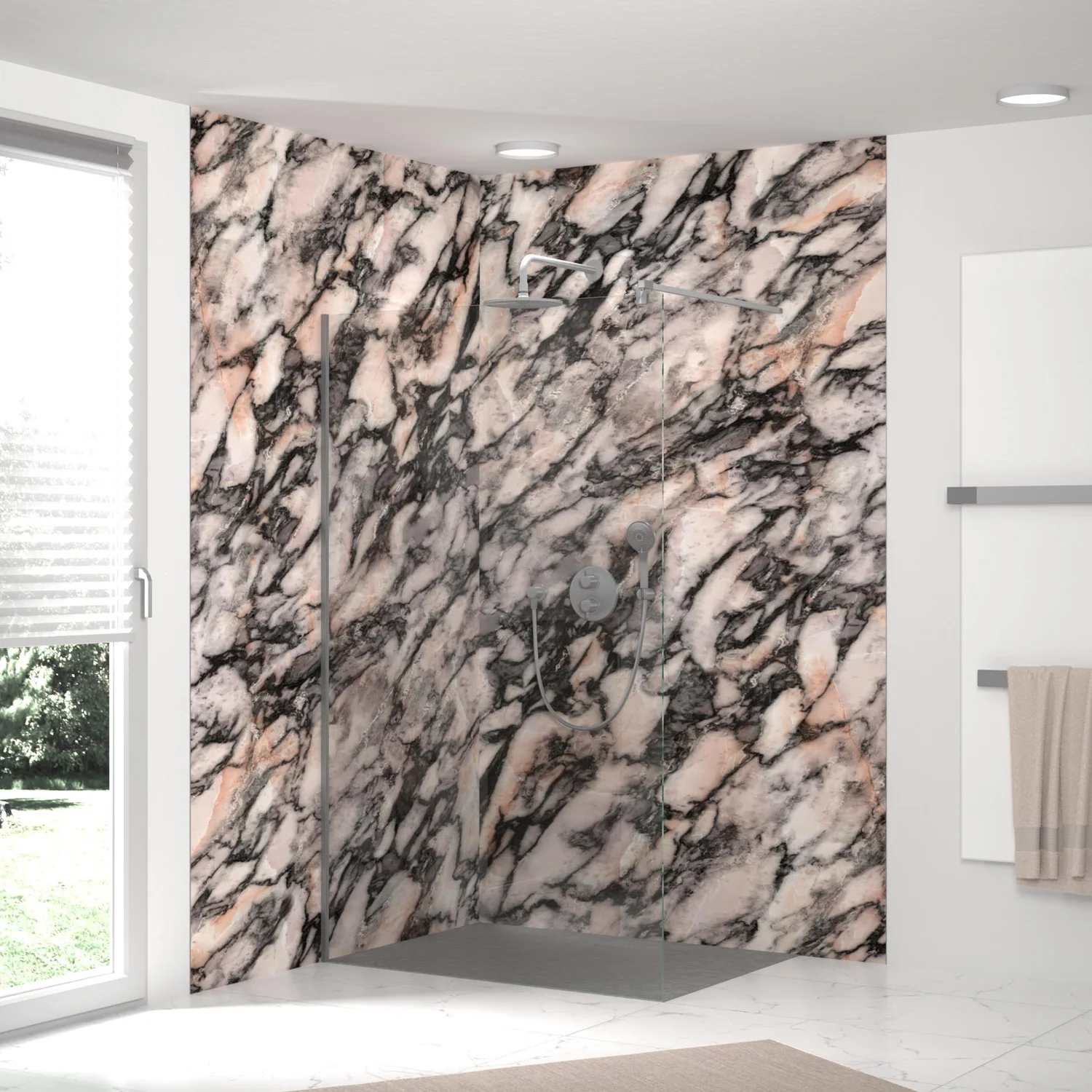 HSK RenoDeco Designplatte 150 x 255 cm Marmor, Weiß-Grau