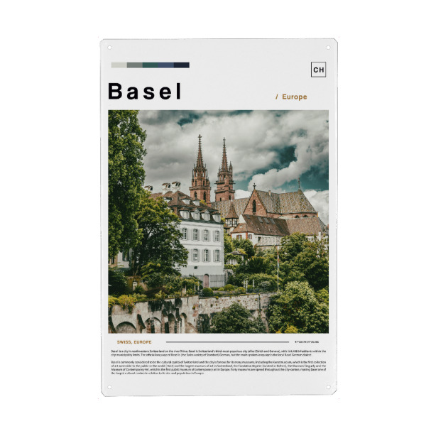 Holzbild "Basel Newspaper cover" artboxONE - Städte,Architektur - Foto,Fotografie,Landschaft,Zeitung,Stadt,Tourismus,Souvenir,Denkmäler,Retro,Vintage