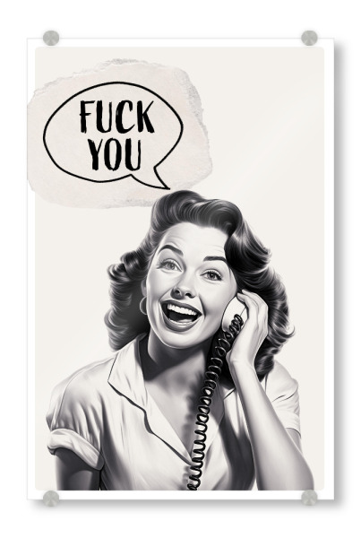 Acrylglasbild "Malou Studio-Friendly Fuck You S" artboxONE - Menschen,Fashion,Festivals - Telefon,Frau,Beauty,Vintage,Portrait,Spruch,Retro,Fuck you