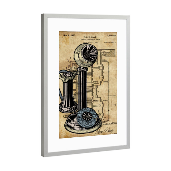 Poster mit Rahmen Silber "Vintage Telefon" artboxONE - Streetart - Telefon,Vintage telefon,Retro,Vintage,Antik,Steampunk